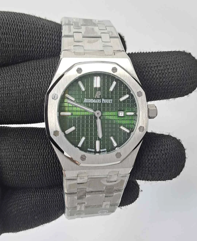 أضف لمسة فخامة حقيقية لإطلالتك مع ساعة Audemars Piguet green من واحد من أشهر التصميمات في عالم الساعات الفاخرة. الساعة بتجمع بين الشكل الأيقوني والسوار المعدني المصقول اللي بيقدّم حضور قوي سواء في الشغل، الخروج، أو المناسبات.