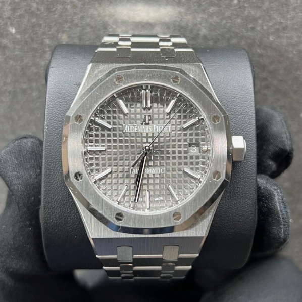 أضف لمسة فخامة حقيقية لإطلالتك مع ساعة Audemars Piguet grey من واحد من أشهر التصميمات في عالم الساعات الفاخرة. الساعة بتجمع بين الشكل الأيقوني والسوار المعدني المصقول اللي بيقدّم حضور قوي سواء في الشغل، الخروج، أو المناسبات.