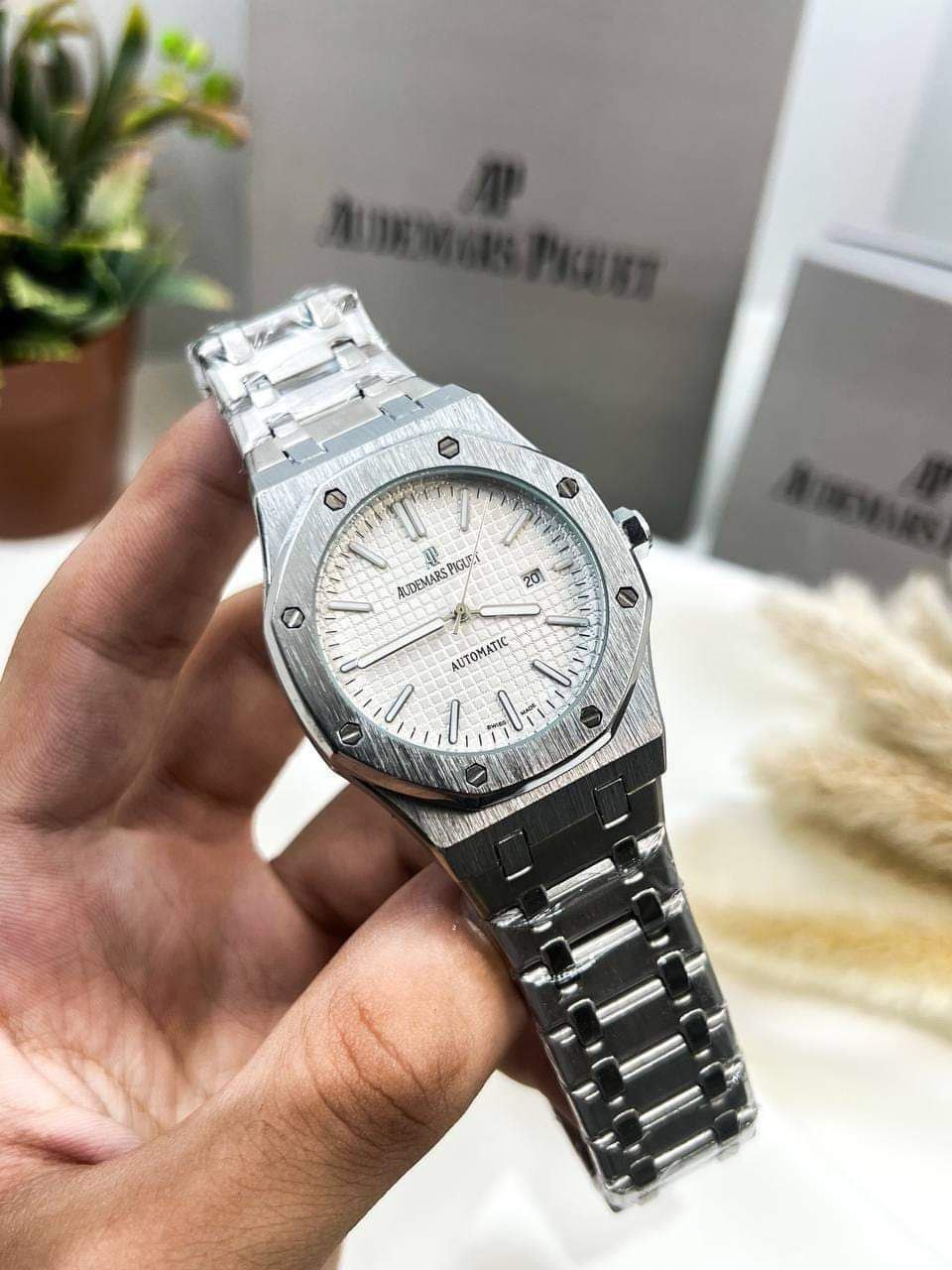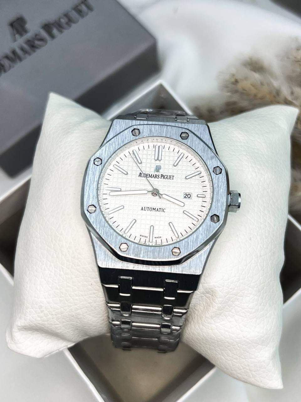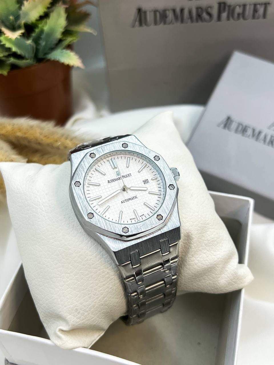 أضف لمسة فخامة حقيقية لإطلالتك مع ساعة Audemars Piguet White المستوحاة من واحد من أشهر التصميمات في عالم الساعات الفاخرة. الساعة بتجمع بين الشكل الأيقوني والسوار المعدني المصقول اللي بيقدّم حضور قوي سواء في الشغل، الخروج، أو المناسبات.